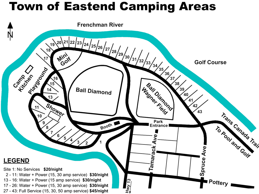 - Please book online at Eastend Campground Reservations