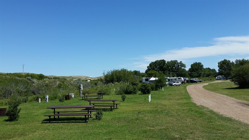 The campground is located on the west side of town along the banks of the Frenchman River.