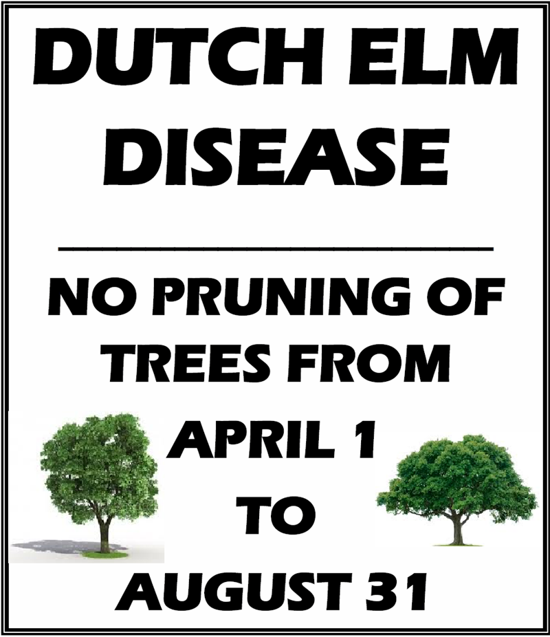 Provincial regulations prohibit pruning elm trees from April 1 to August 31 each year to reduce the risk of spreading Dutch Elm Disease (DED).